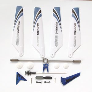 Replacement Parts for Syma S107 Blue Helicopter! 1 Set of Main Blades, 1 Set of Tail Decorations, 2 Tail Props, 1 Balance Bar, 1 Main Shaft, 4 Gears, 2 Connect Buckles.